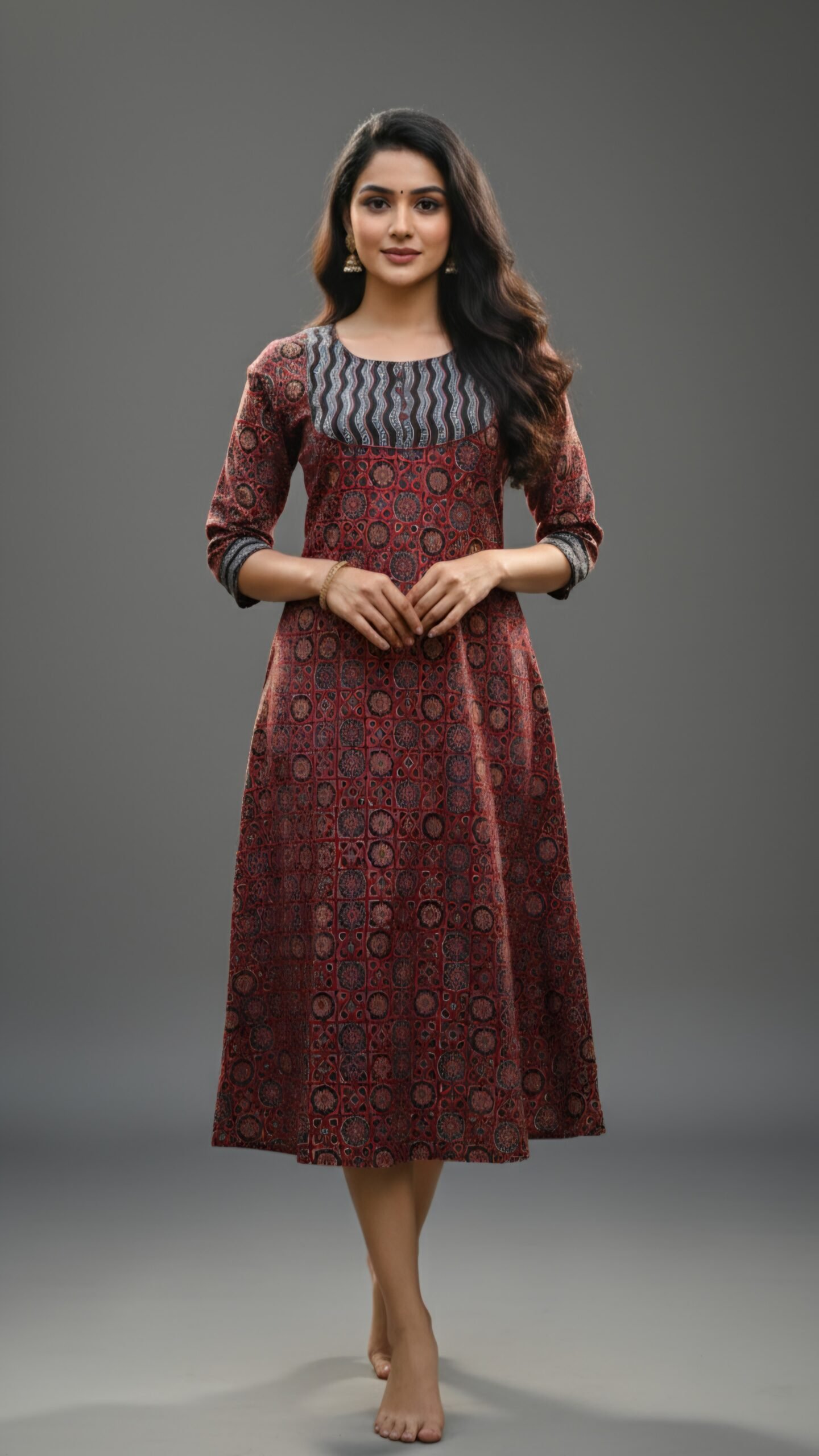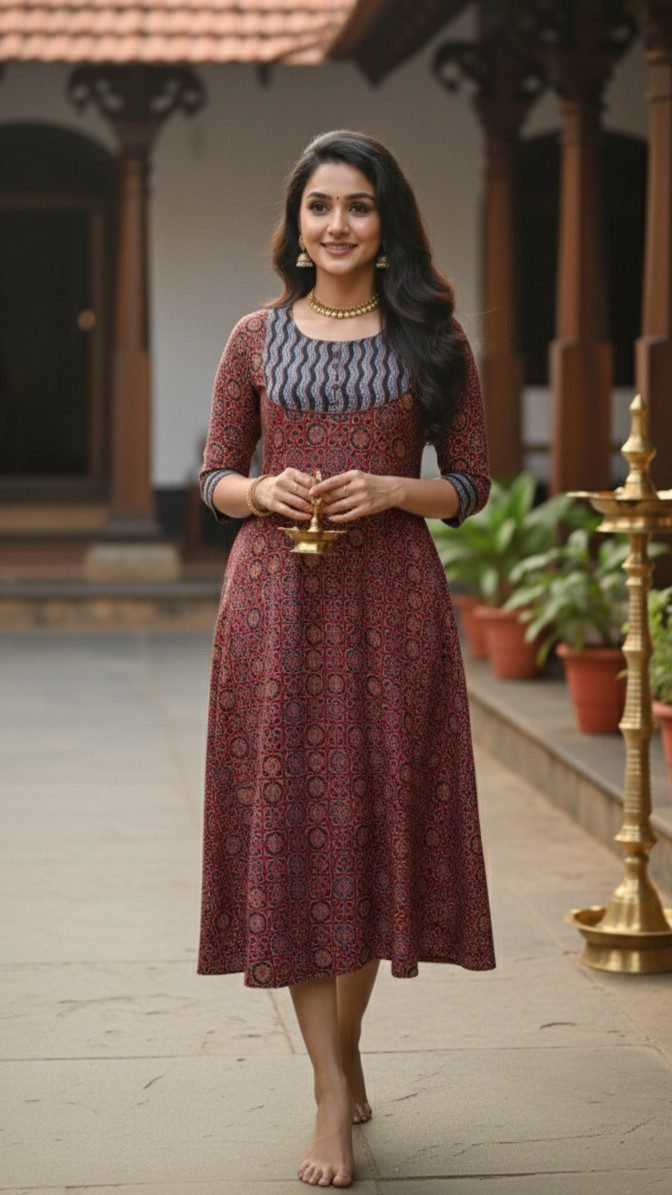 Experience timeless tradition and modern elegance with our Premium Cotton Ajrakh Kurti, designed for women who appreciate authentic craftsmanship. Made using soft and breathable cotton, this kurti features traditional Ajrakh-inspired block prints in rich earthy tones, giving it a refined ethnic charm.