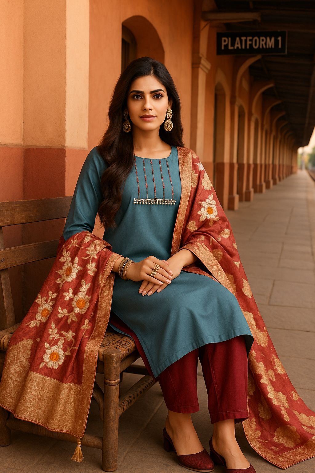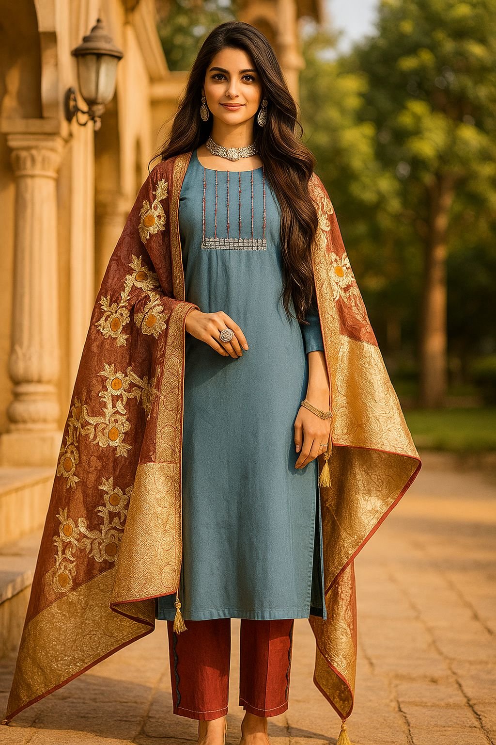 ✅ Rich embroidered banarasi-style dupatta with tassels