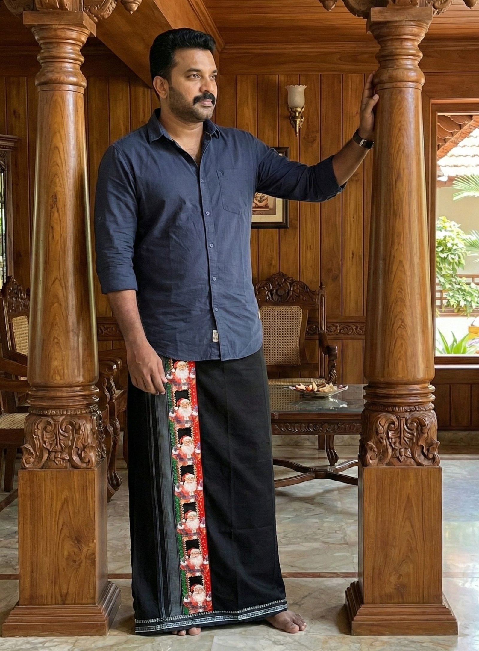 The standout feature is its reflective festive print, which shines beautifully under light—making it ideal for Christmas parties, family gatherings, festive photoshoots, and special events. Soft, breathable, and comfortable to wear, this mundu blends tradition with modern fun, making it a must-have addition to your holiday wardrobe.