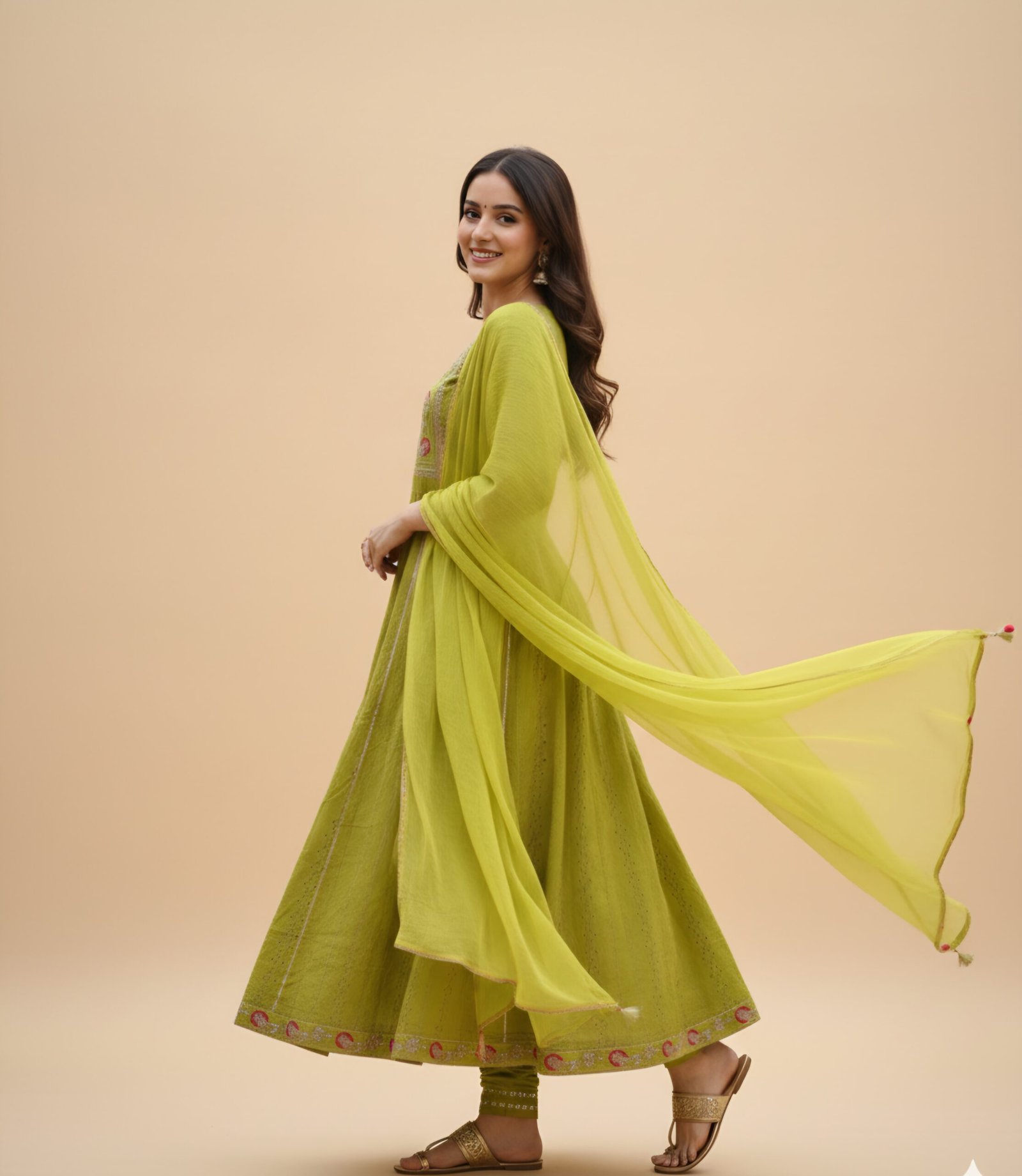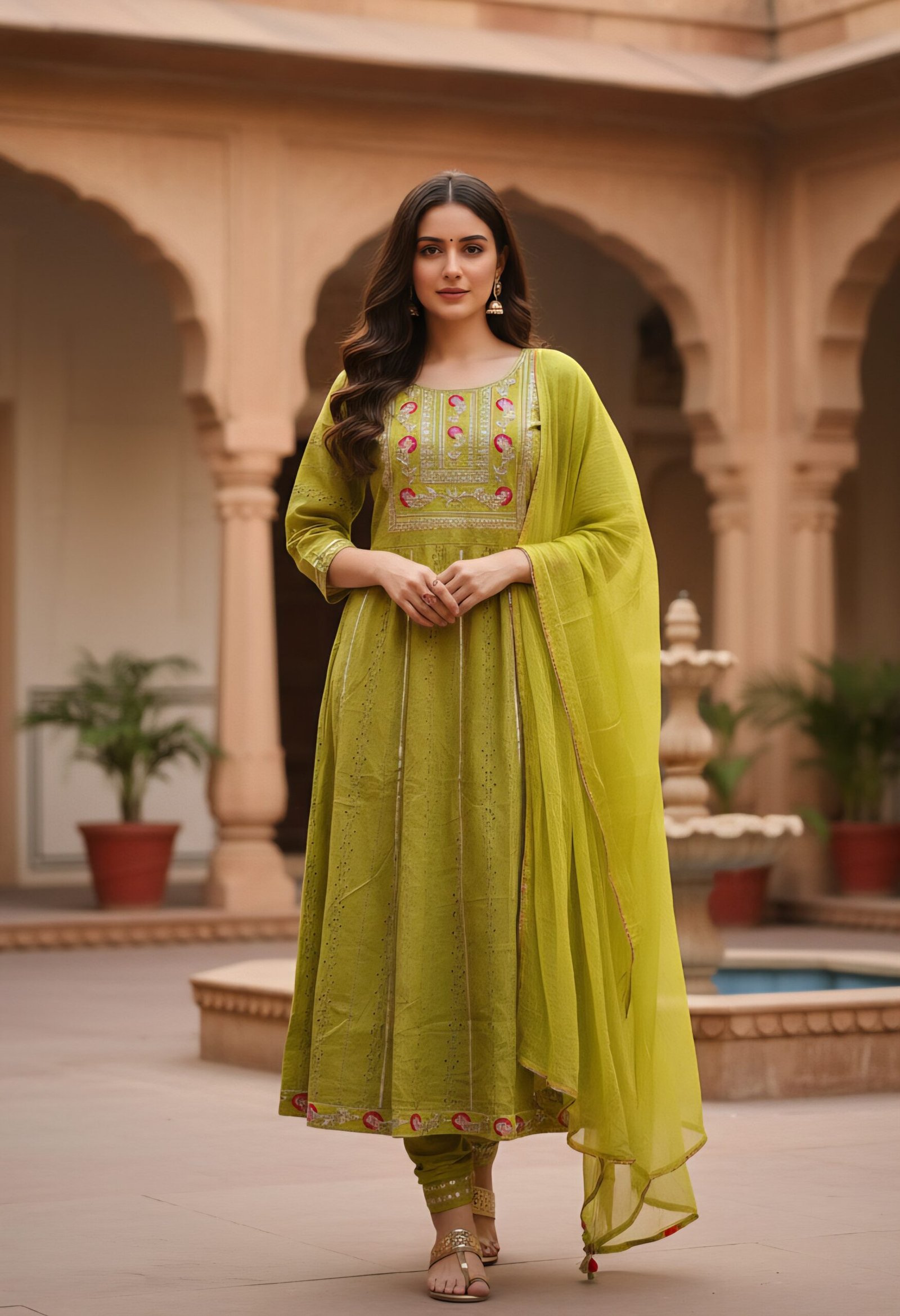 Style: Frock-cut kurta with matching pant and dupatta (set of 3)