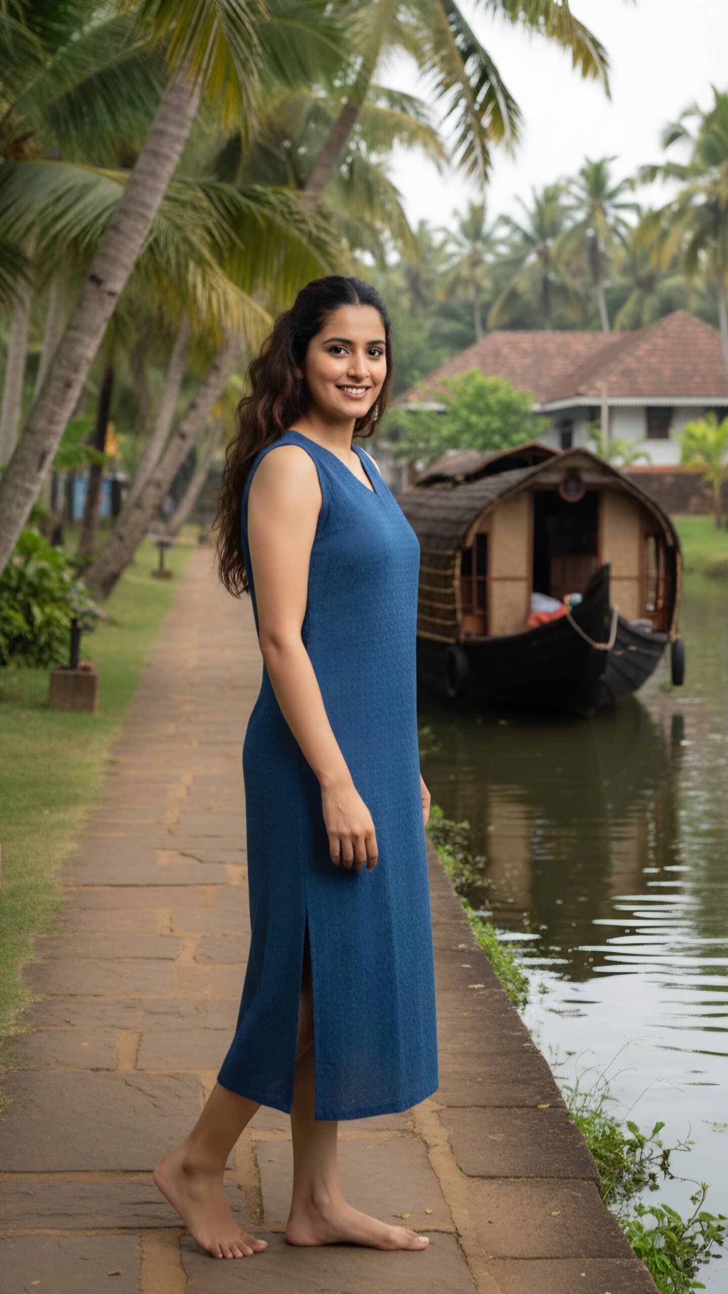 Featuring detailed all-over thread embroidery, the design adds a subtle yet classy texture that enhances the overall look. It comes in a straight-cut silhouette with a V-neckline, offering a flattering fit for every body shape. Sleeves are provided separately, giving you the flexibility to wear it as sleeveless or stitched sleeves based on your style preference.