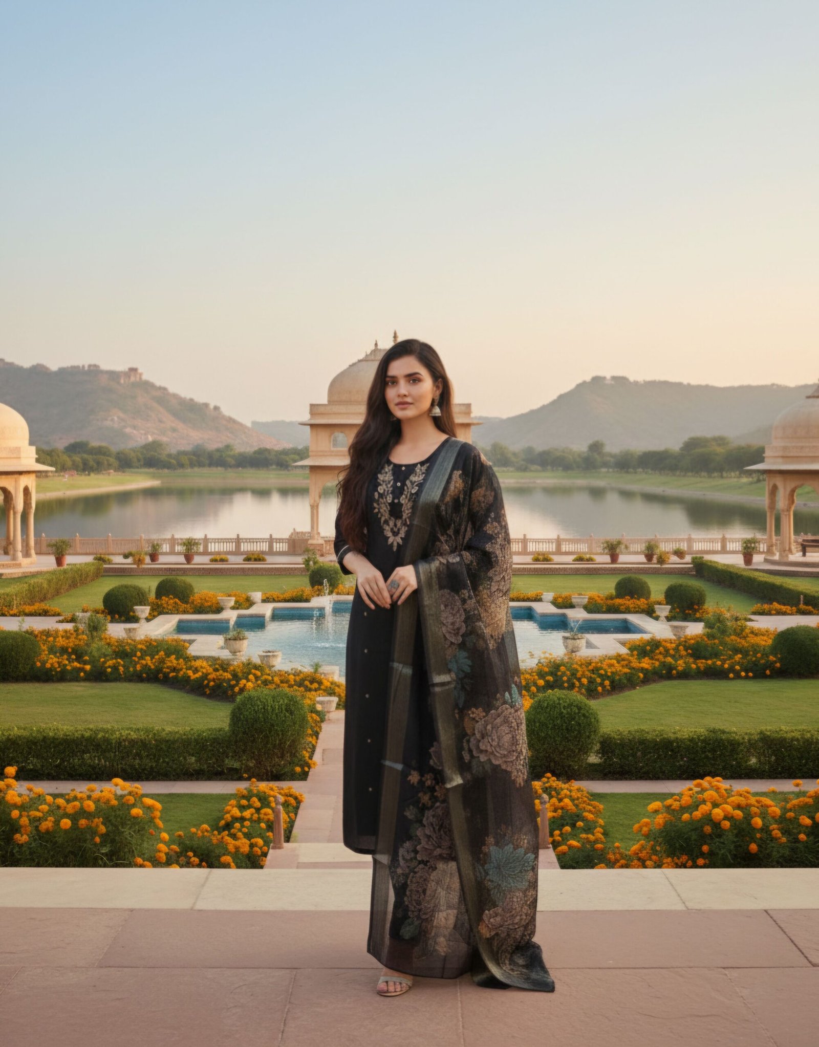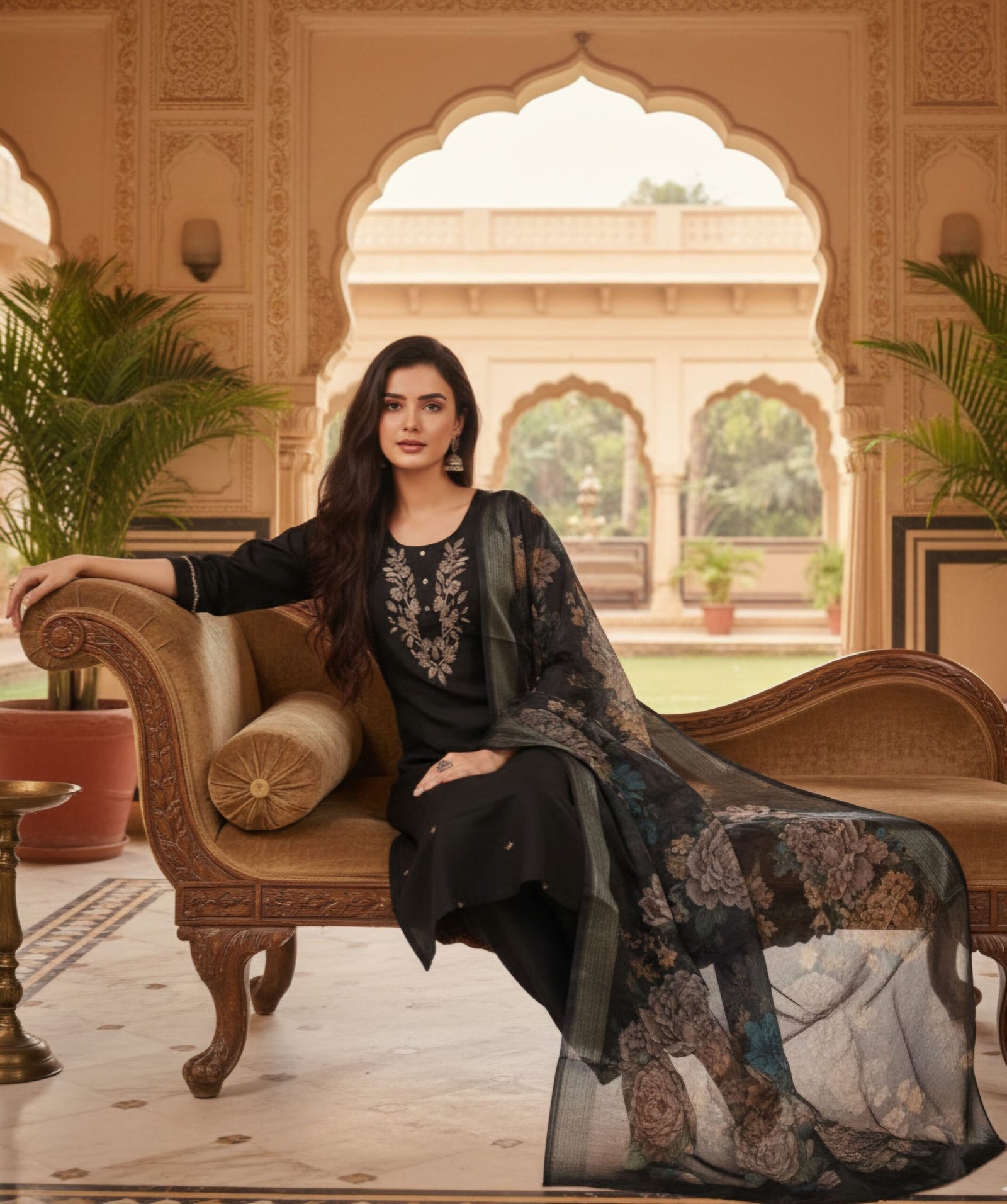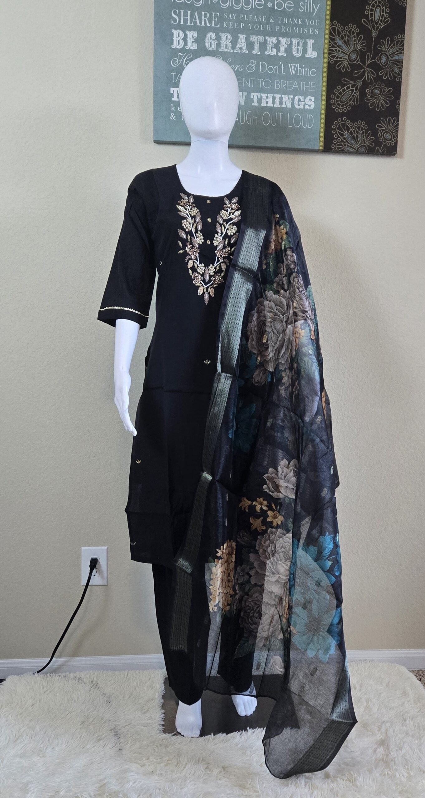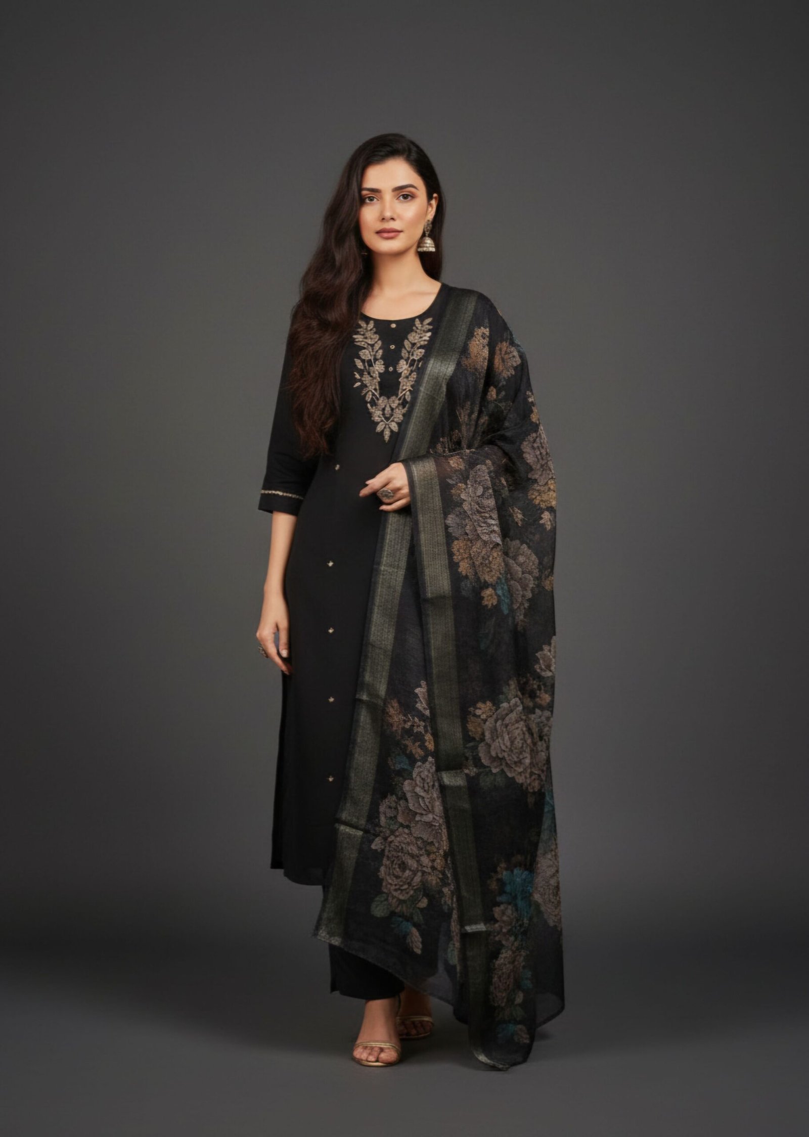 • Dupatta: Organza-style with floral print