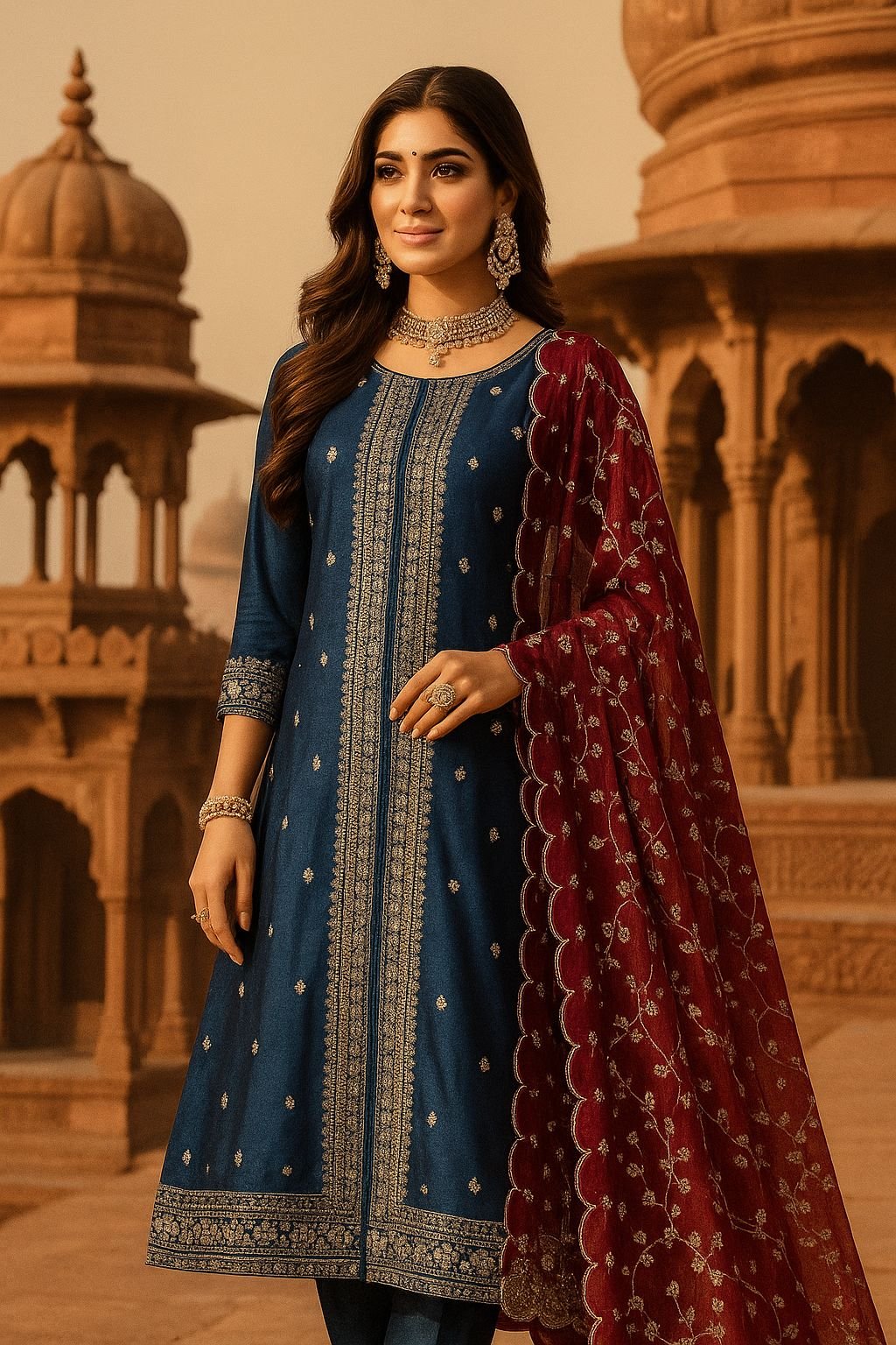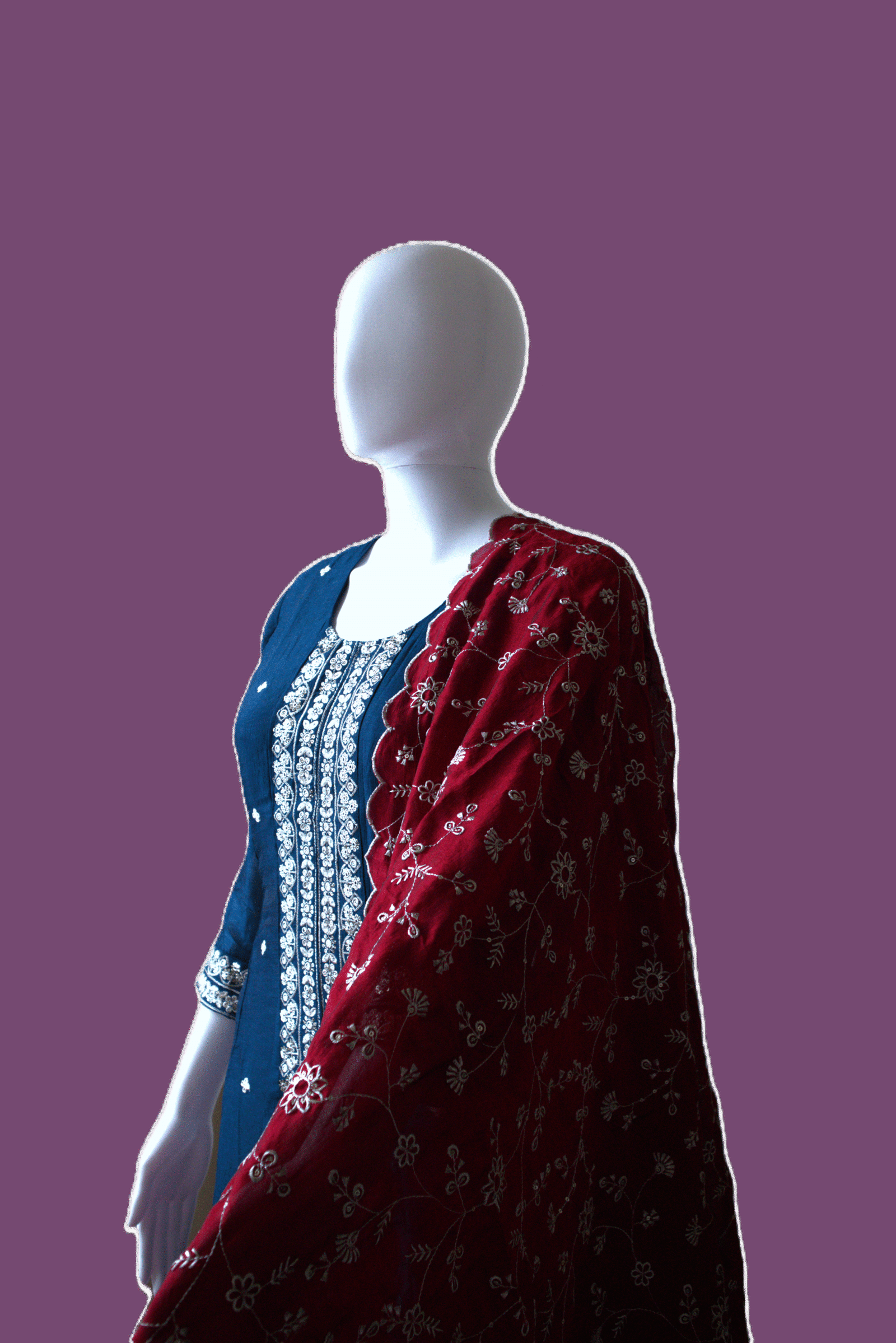 Color Combination: Royal Blue Kurta & Bottoms | Maroon Dupatta